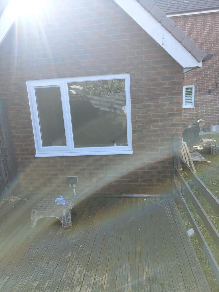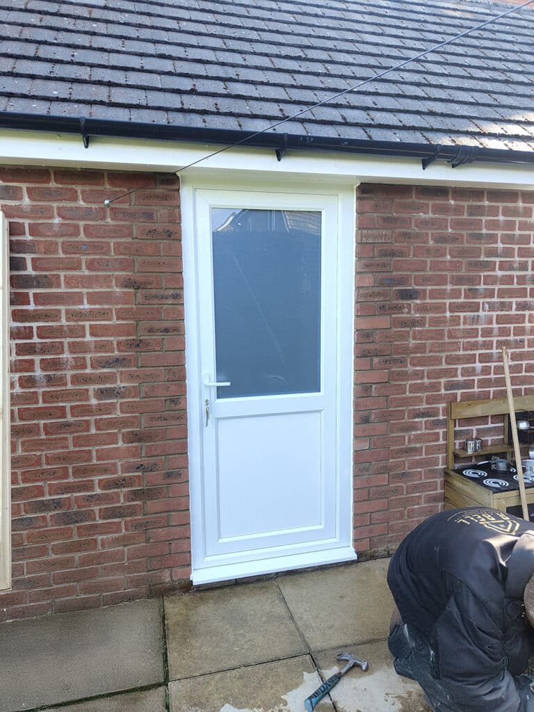 • Replacing the old access door with a modern uPVC door with satin glass, allowing light while maintaining privacy